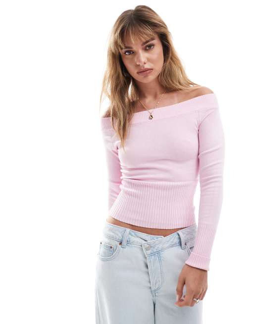 Pull&Bear - Maglione alla bardot rosa a coste