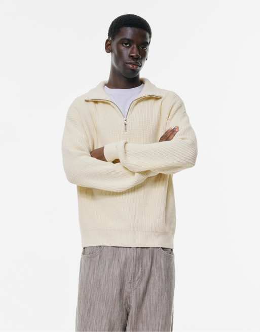Pull&Bear - Maglione bianco sporco con zip corta