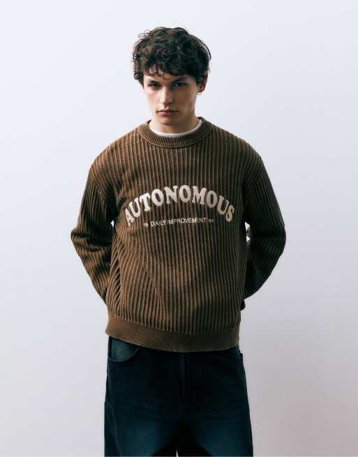 Pull&Bear - Maglione marrone con scritta Autonomous