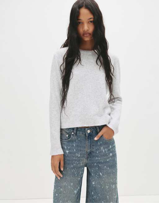 Pull&Bear - Maglione morbido al tatto grigio mélange