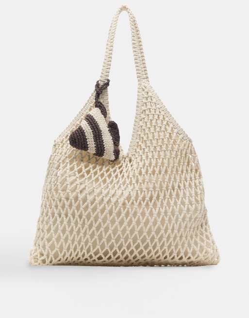 Pull&Bear - Maxi borsa in macramé écru decorata