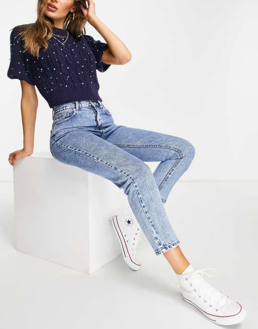 Pull&Bear - Mom jeans a vita media blu medio