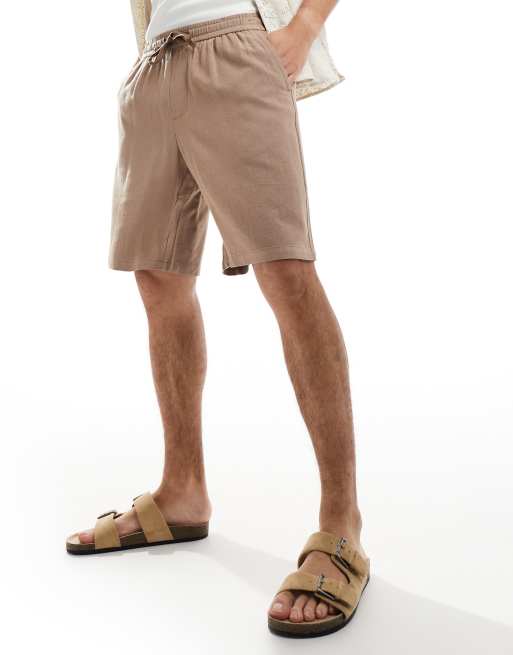 Pull&Bear - Pantaloncini ampi in lino marrone