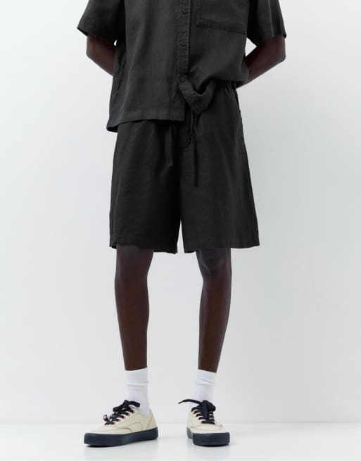 Pull&Bear - Pantaloncini della tuta neri in 100% lino