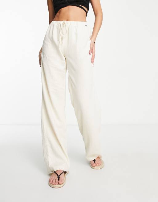 Pull&Bear - Pantaloni a fondo ampio in lino bianco