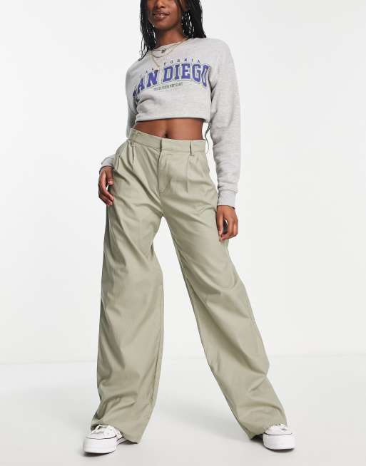 Pull&Bear - Pantaloni a vita alta con fondo ampio kaki