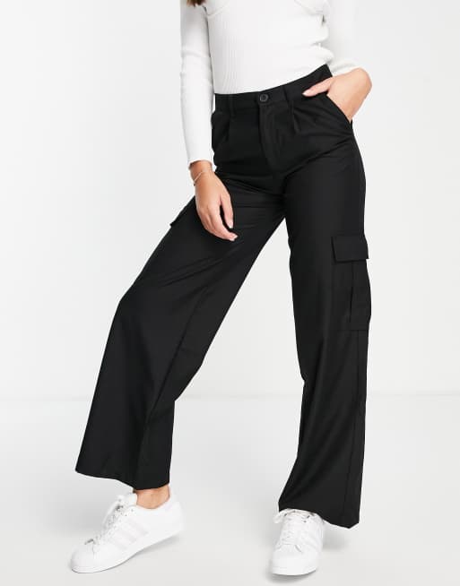 Pull&Bear - Pantaloni cargo a fondo ampio neri con pinces