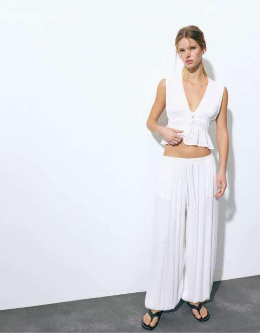 Pull&Bear - Pantaloni da gaucho in crêpe bianchi