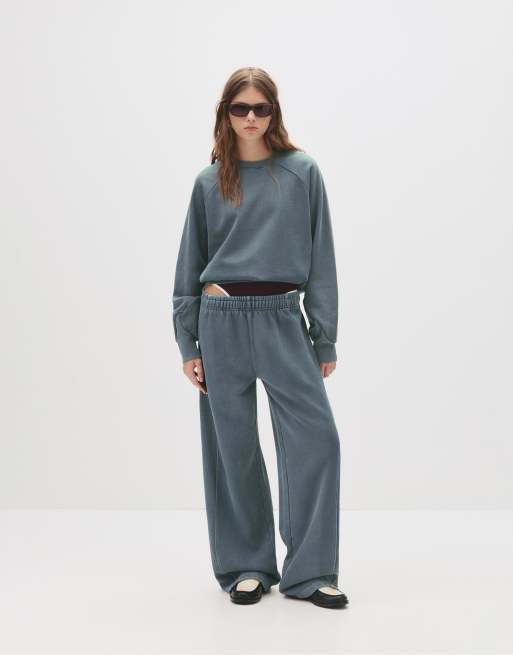Pull&Bear - Pantaloni da tuta con fondo ampio grigi