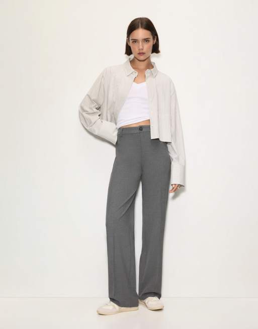 Pull&Bear - Pantaloni eleganti dritti a vita alta grigi