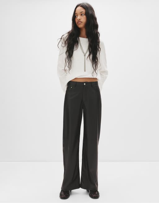 Pull&Bear - Pantaloni in pelle sintetica neri