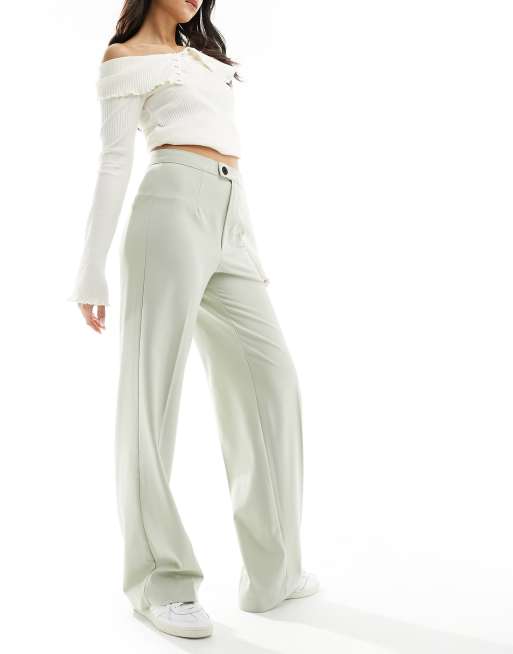 Pull&Bear - Pantaloni sartoriali kaki pallido a fondo ampio con pieghe