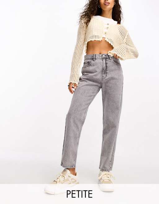 Pull&Bear Petite - Mom jeans a vita alta grigi