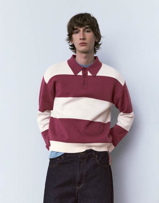 Pull&Bear - Polo a maniche lunghe con pannelli bordeaux