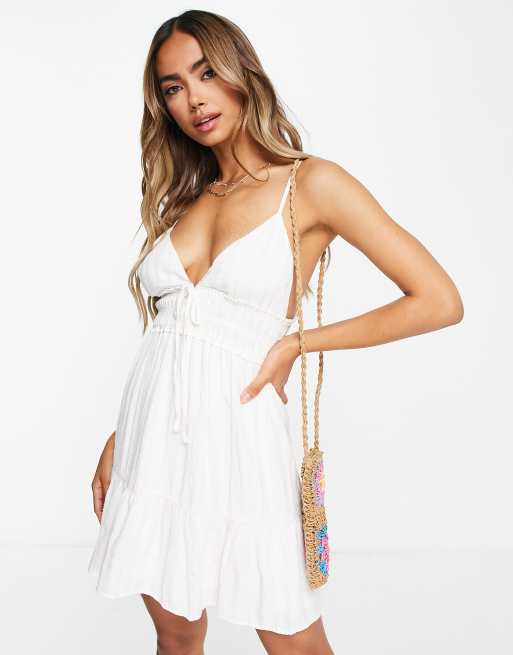 Pull&Bear - Rustic - Vestito corto in cotone rustico bianco