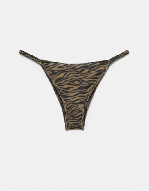Pull&Bear - Slip bikini arricciati verdi con stampa zebrata