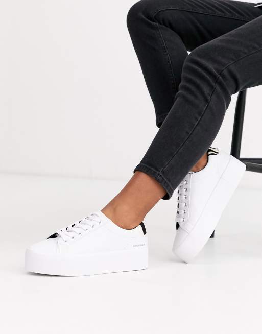 Pull&Bear - Sneakers flatform bianche con linguetta a contrasto sul retro