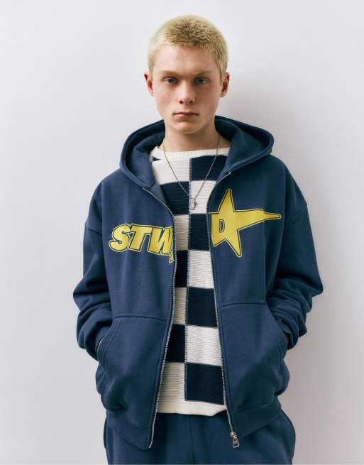 Pull&Bear - STWD - Felpa blu con cappuccio e zip