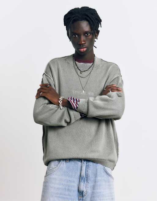 Pull&Bear - Stwd Studio - Maglione ricamato nero sbiadito