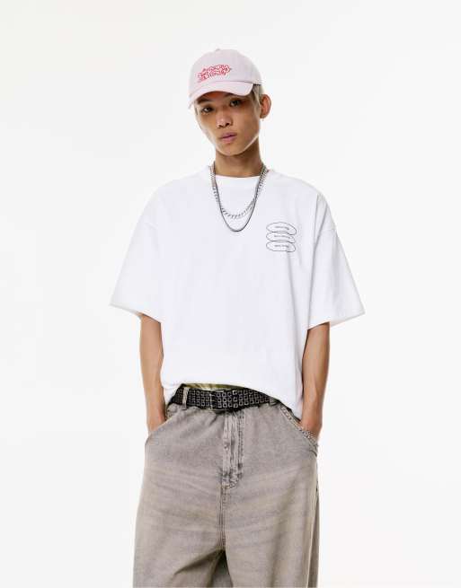 Pull&Bear - STWD - T-shirt bianco sporco con stampa "Ghost Mode"