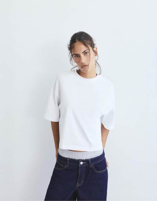 Pull&Bear - T-shirt a maniche corte squadrata bianca