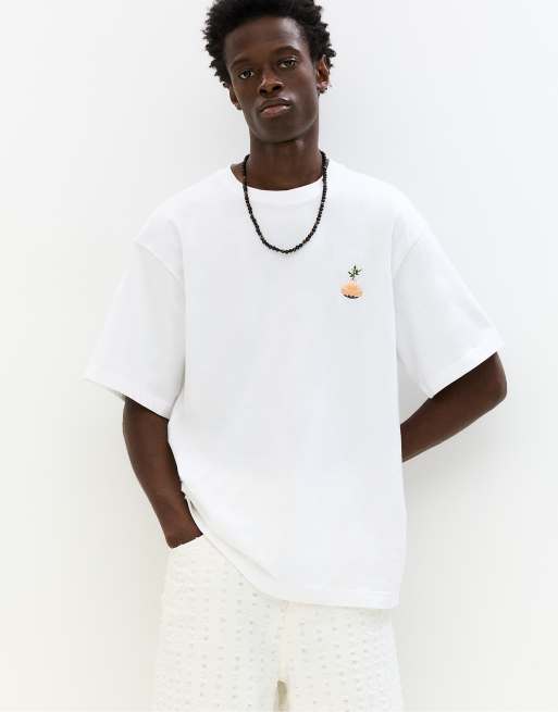 Pull&Bear - T-shirt bianco sporco con ricamo di vaso