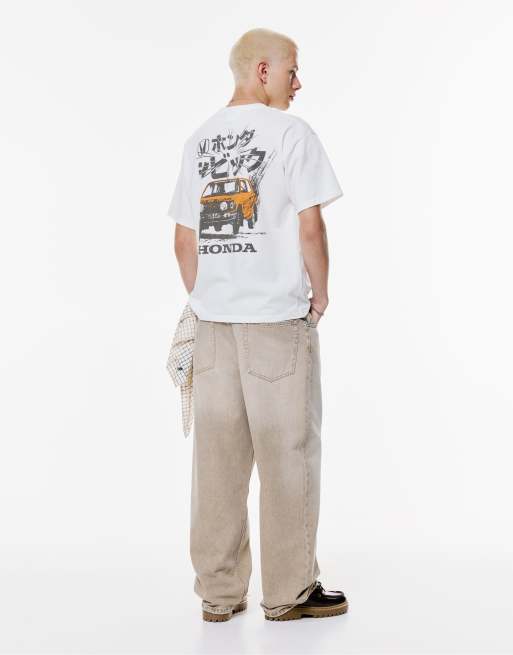 Pull&Bear - T-shirt bianco sporco con stampa rally "Honda Civic"