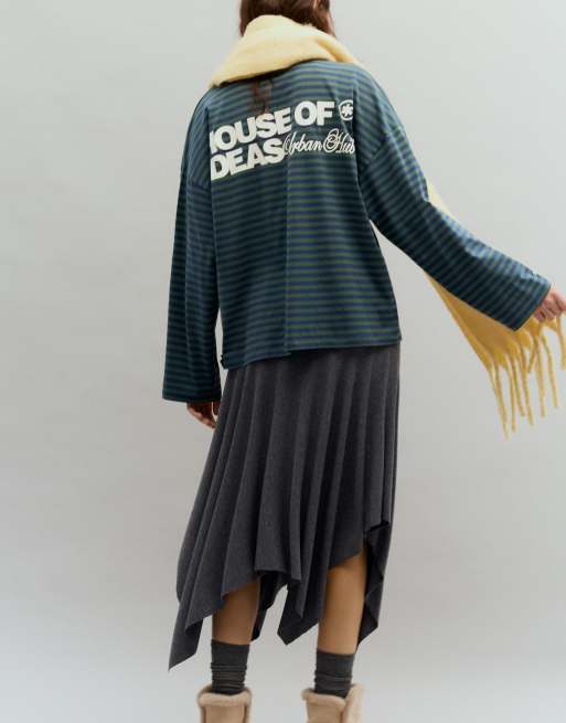 Pull&Bear - T-shirt blu navy a righe con scritta