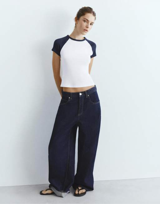 Pull&Bear - T-shirt con maniche raglan blu navy