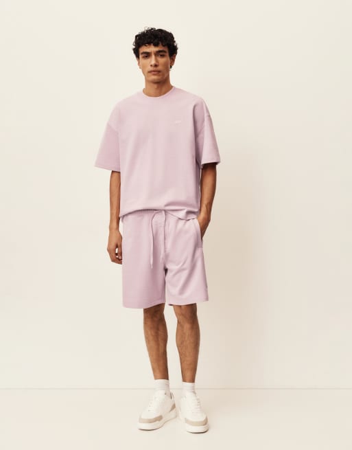 Pull&Bear - T-shirt pesante rosa a maniche corte con logo