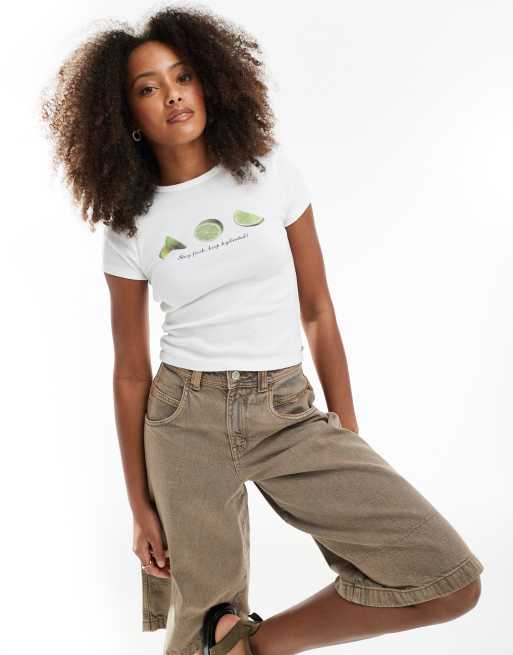 Pull&Bear - T-shirt ristretta bianca con grafica di lime