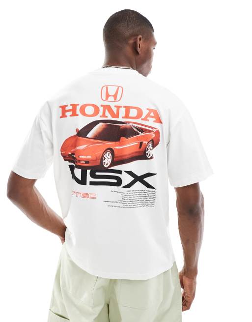 Pull&Bear - T-shirt squadrata bianca con grafica Honda