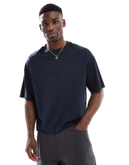Pull&Bear - T-shirt squadrata blu navy in interlock