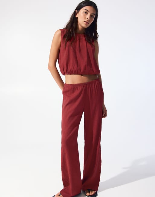 Pull&Bear - Top a palloncino grezzo bordeaux