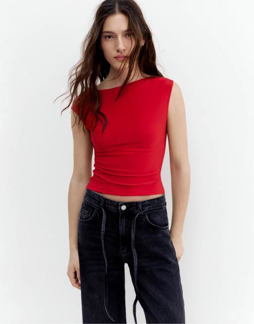 Pull&Bear - Top asimmetrico raccolto color fragola