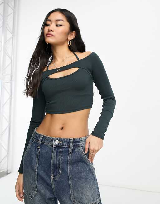 Pull&Bear - Top coprispalle 2 in 1 grigio scuro con spalline sottili