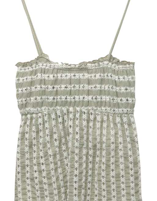 Pull&Bear - Top in maglia écru/verde con spalline sottili