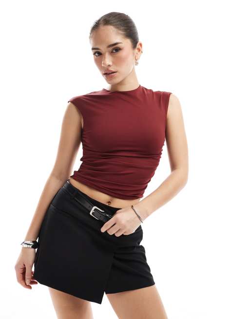 Pull&Bear - Top in poliammide bordeaux con cut-out sul retro