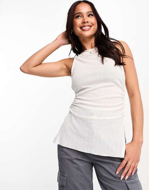 Pull&Bear - Top trasparente testurizzato bianco in coordinato