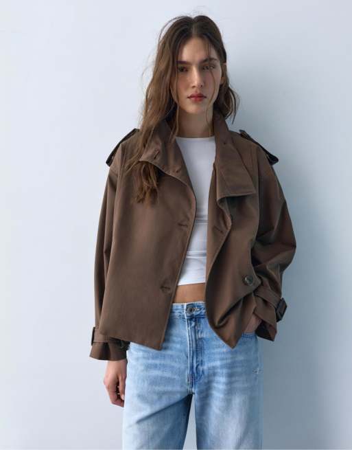 Pull&Bear - Trench corto marrone