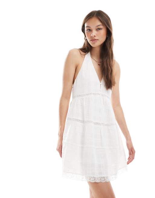 Pull&Bear - Vestito corto a balze bianco con finiture in pizzo