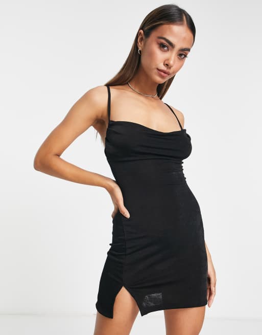 Pull&Bear - Vestito corto nero con spacco e spalline sottili