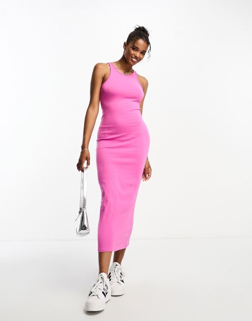 Pull&Bear - Vestito rosa fucsia con scollo a vogatore e gonna al polpaccio