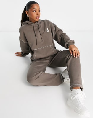 Pull&Bear x Kangol - Coordinato con felpa oversize lunga con cappuccio e joggers marrone slavato - BRO