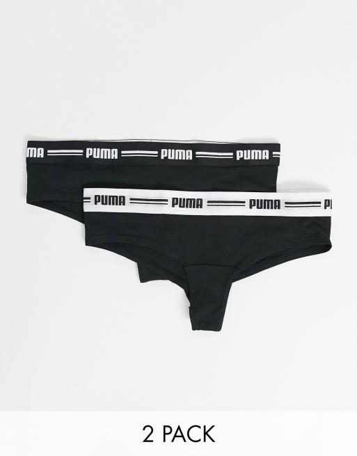 Puma - Confezione da 2 perizomi stile brasiliana neri con fascia con logo