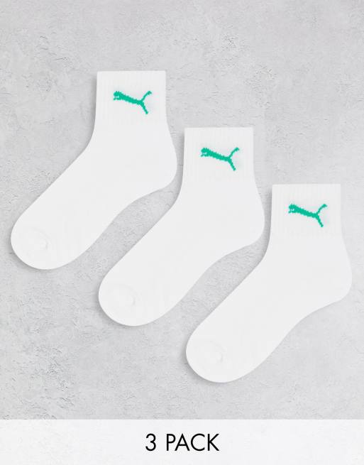 PUMA - Confezione da 3 paia di calzini bianchi e verde acido