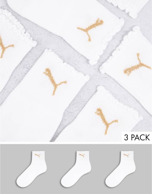 PUMA - Confezione da tre paia di calzini smerlati in bianco e oro