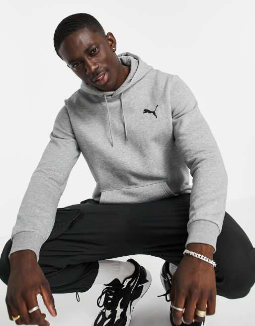 PUMA - Essentials - Felpa grigia con cappuccio e logo piccolo