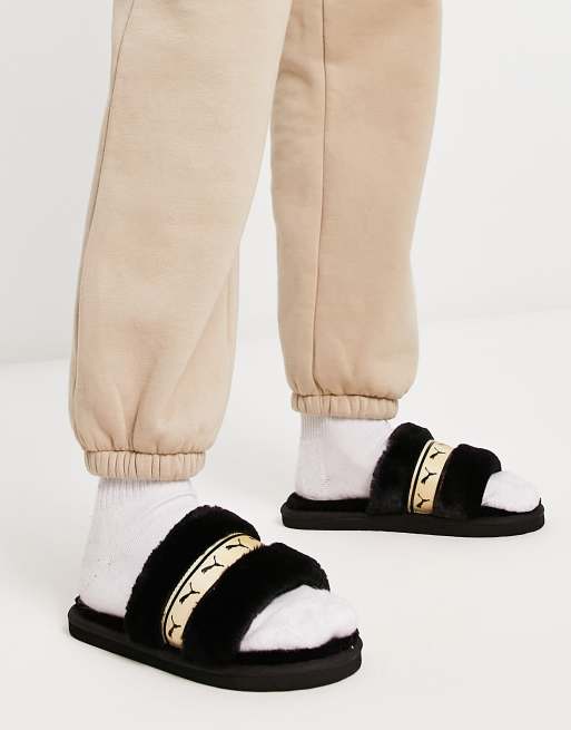 Puma - Fluff - Pantofole stile sliders nero e oro