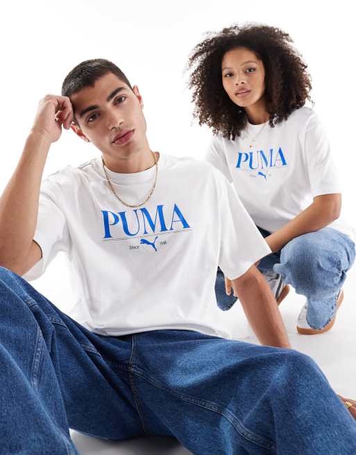PUMA - Terrace - T-shirt bianca e blu con logo al centro